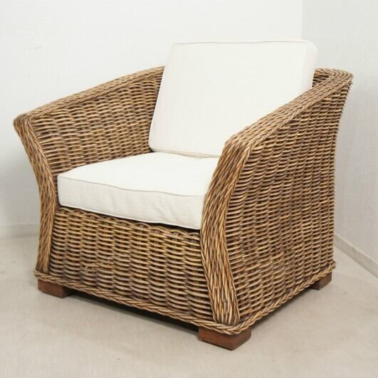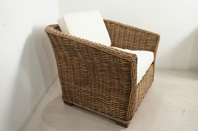 天然ラタンを編み上げて作られた一人掛けソファです。