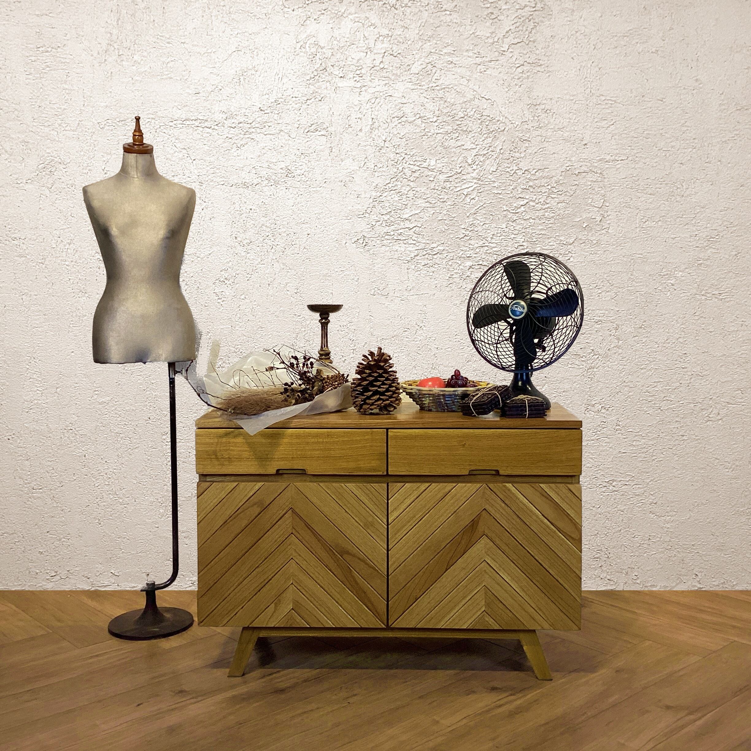 北欧スタイル ヘリンボーン スイングドア キャビネット2 チーク色 cab277