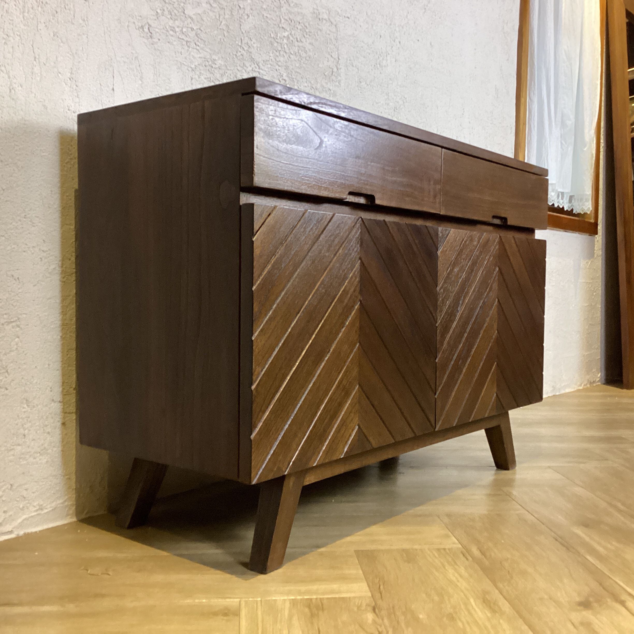 北欧スタイル ヘリンボーン スイングドア キャビネット2 ウォルナット色 cab277