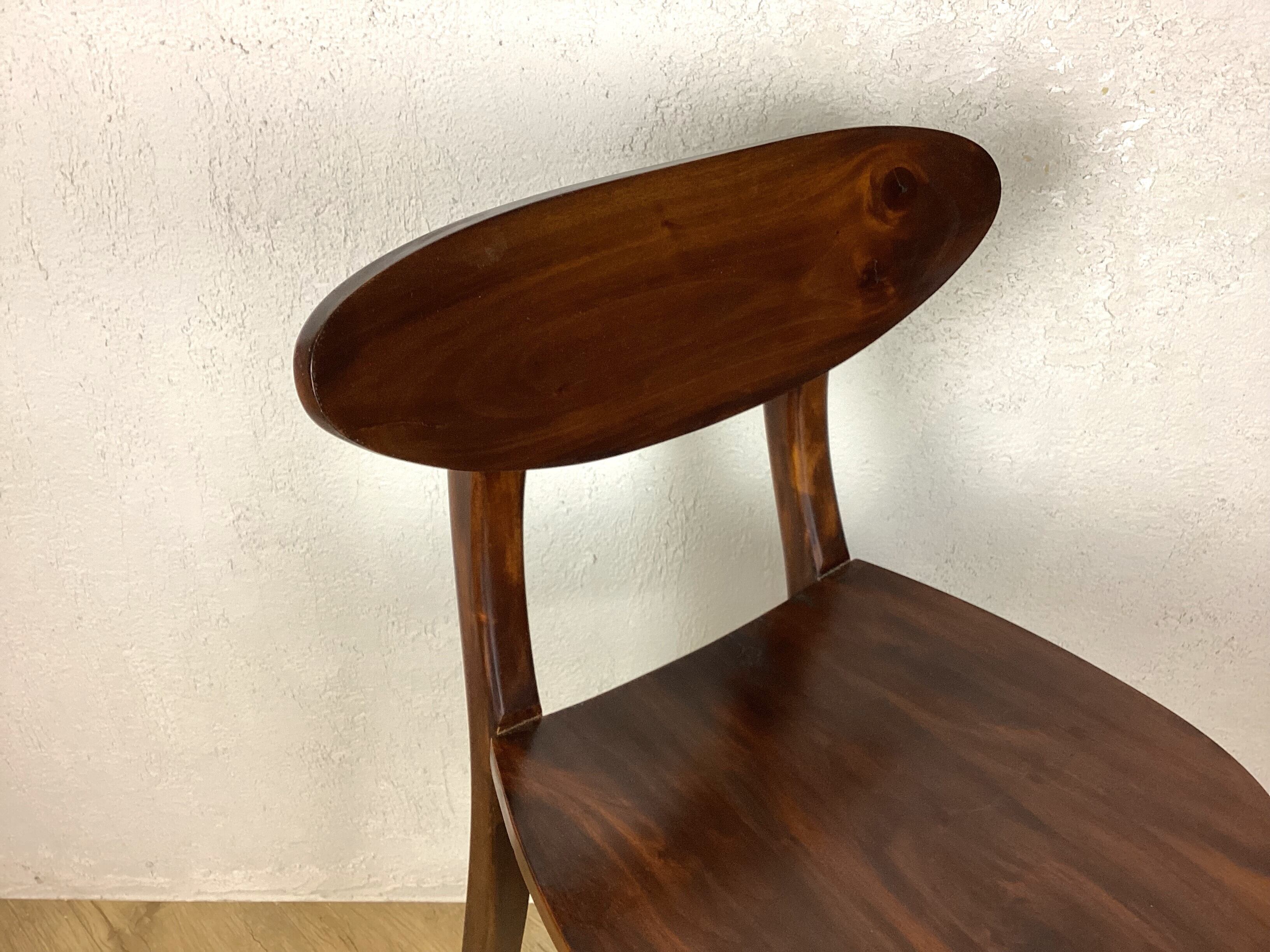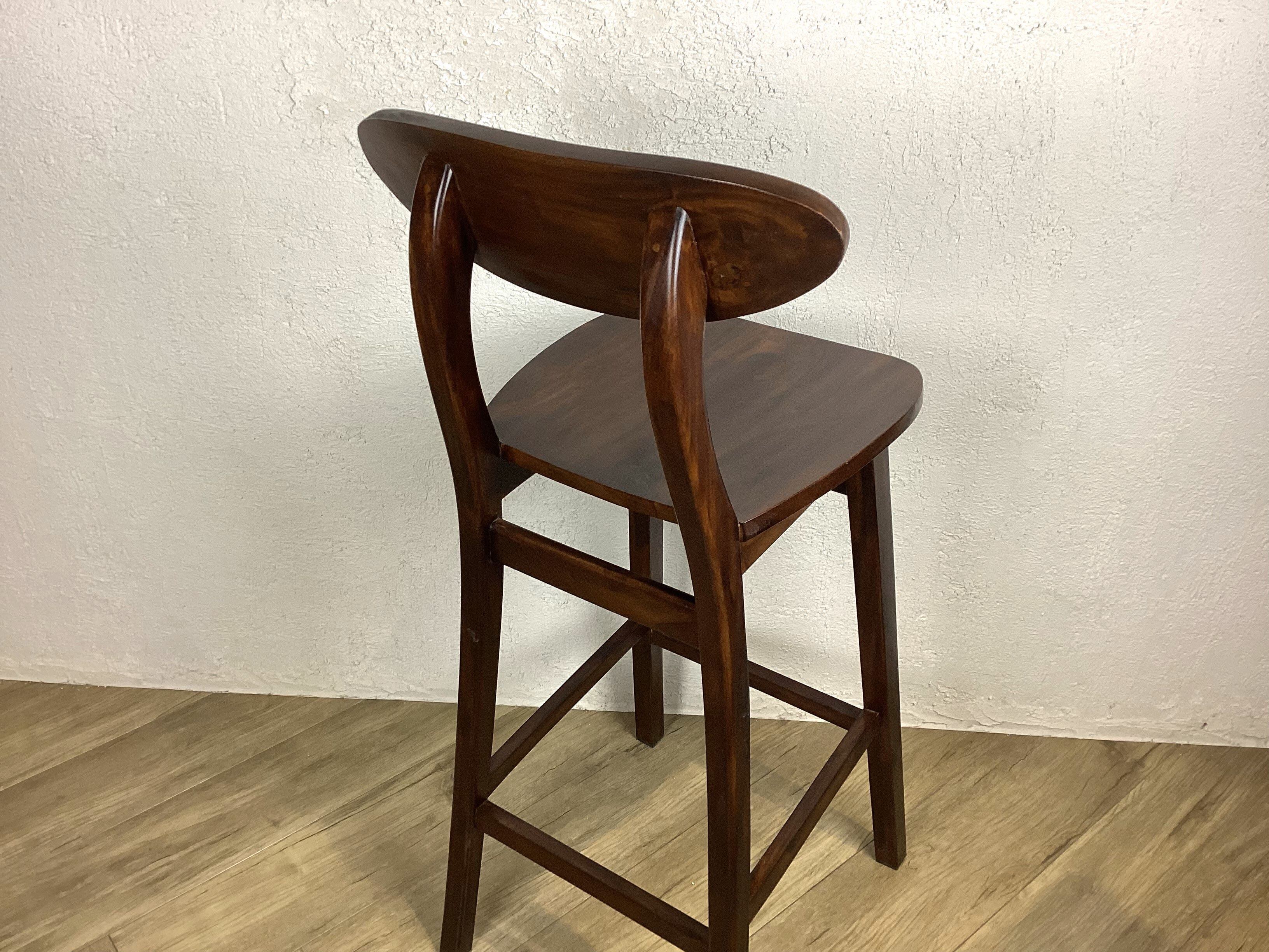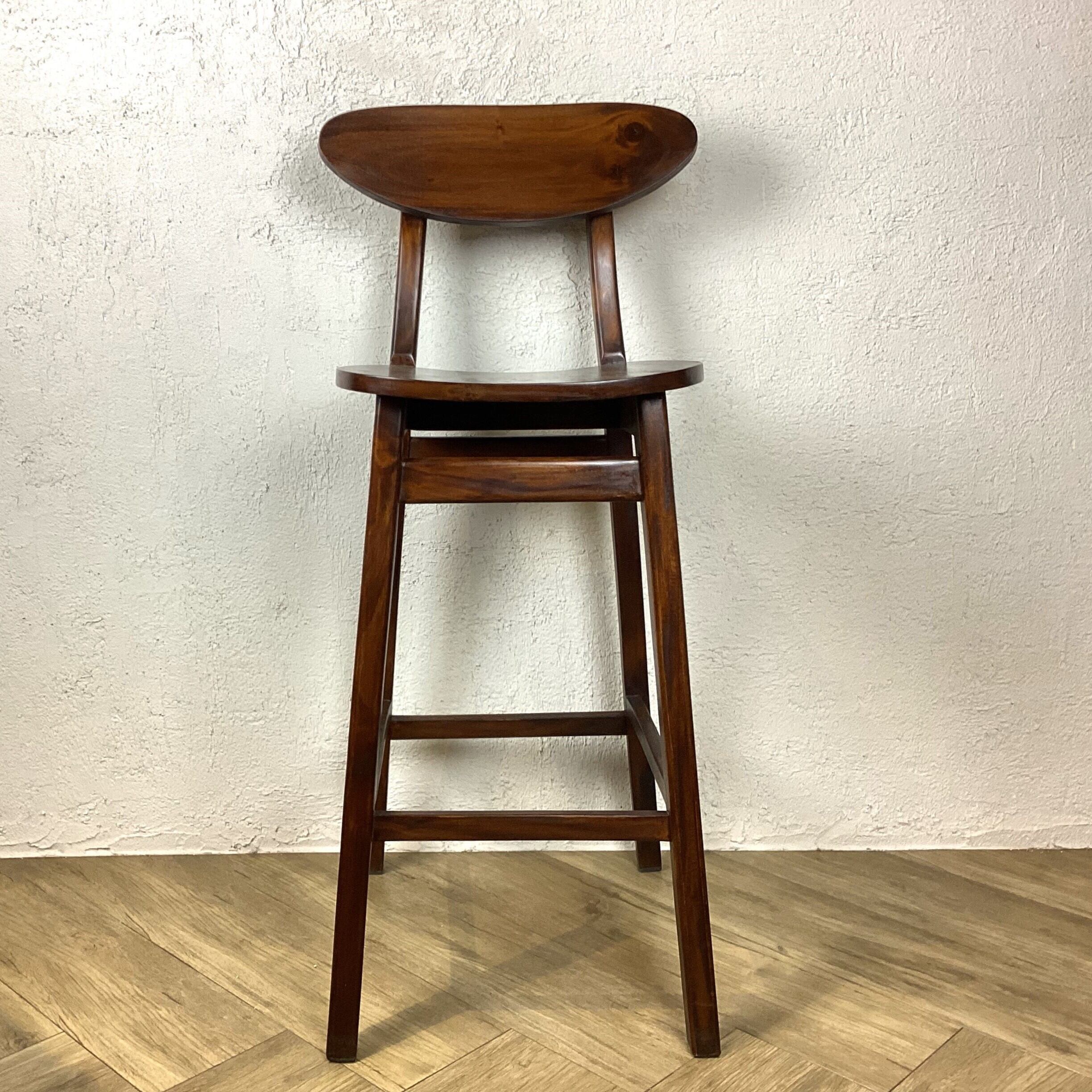 アンティーク調の雰囲気漂う、マホガニー無垢材のカウンターチェア。存在感のあるウォルナット色が、どんなインテリアにも華やかなアクセントを添えます。背もたれが付いているので、座り心地も抜群。手作りで丁寧に作られた一脚は、使うたびに味わいが増していきます。