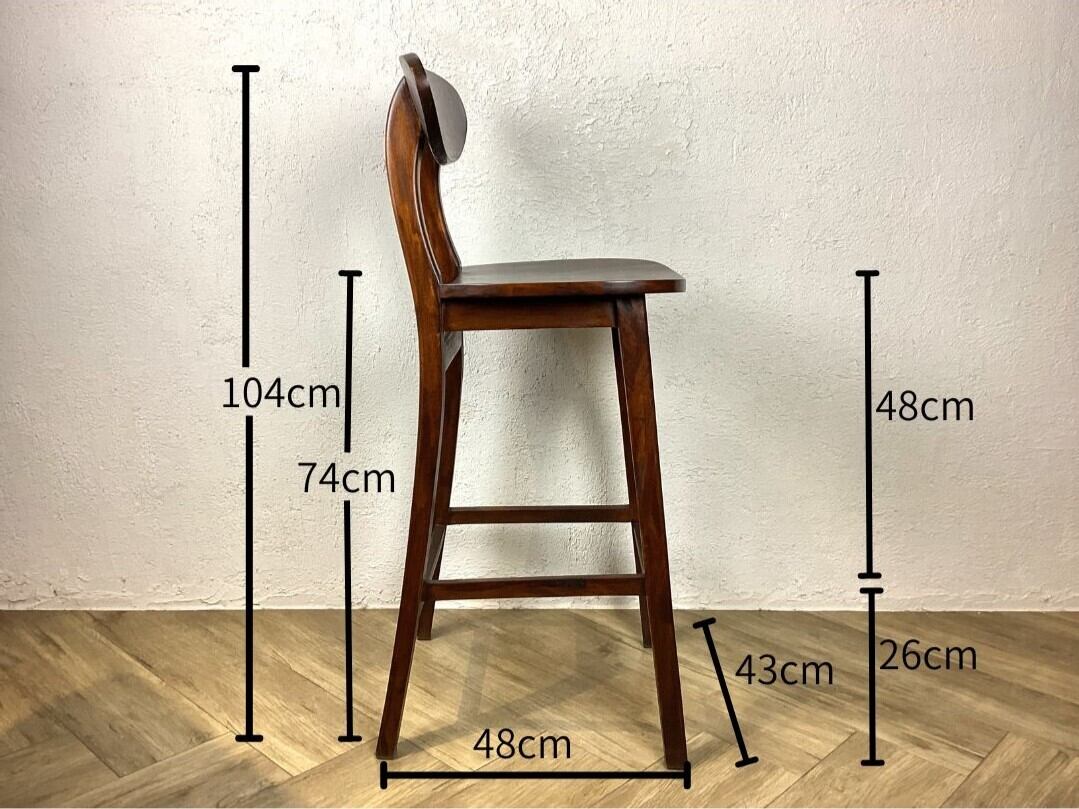 アンティーク調 カウンターチェア ハイスツール 無垢材 ウォルナット色 cha402