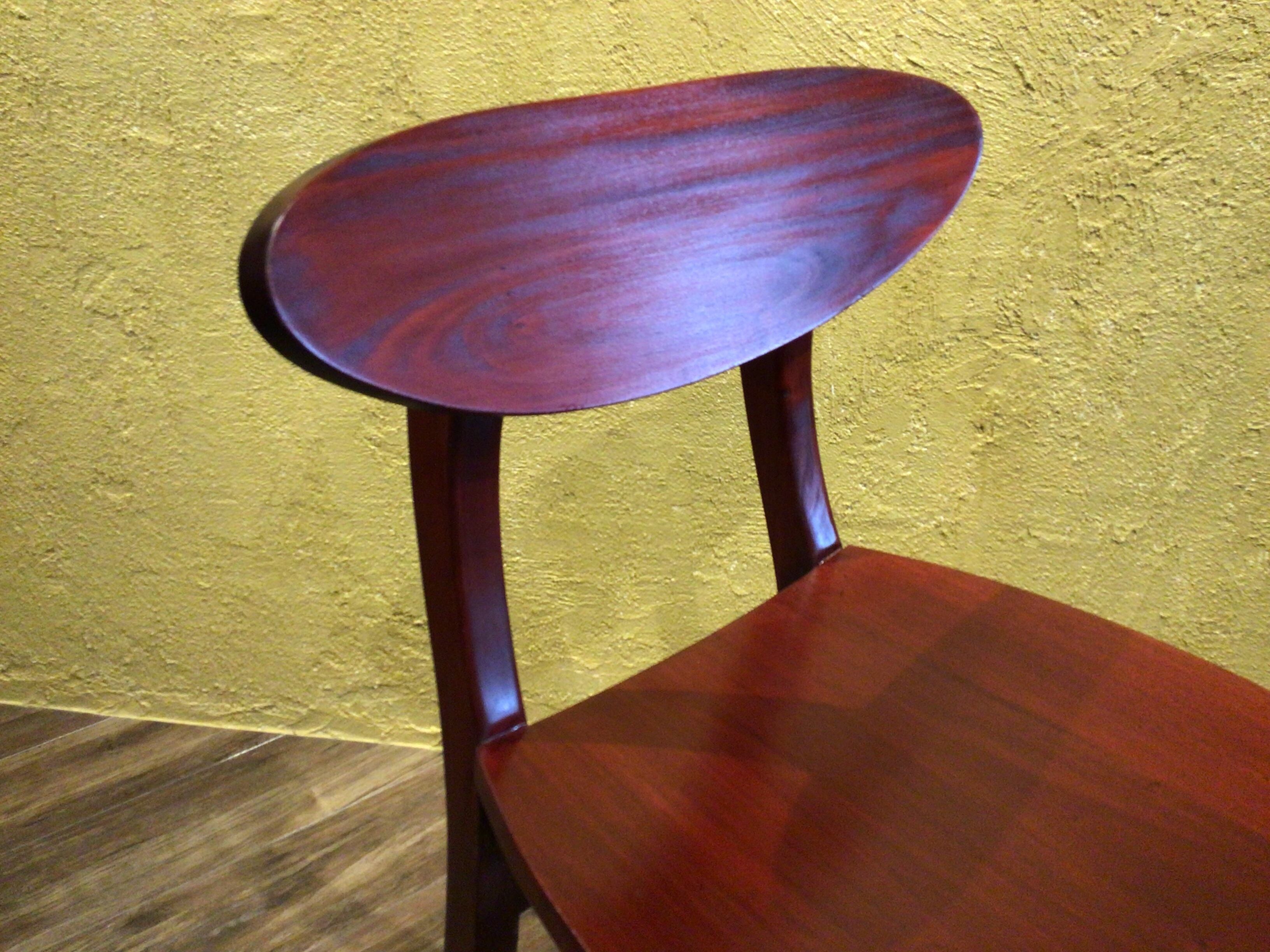 アンティーク調の雰囲気漂う、マホガニー無垢材のカウンターチェア。存在感のある赤マホガニー色が、どんなインテリアにも華やかなアクセントを添えます。背もたれが付いているので、座り心地も抜群。手作りで丁寧に作られた一脚は、使うたびに味わいが増していきます。