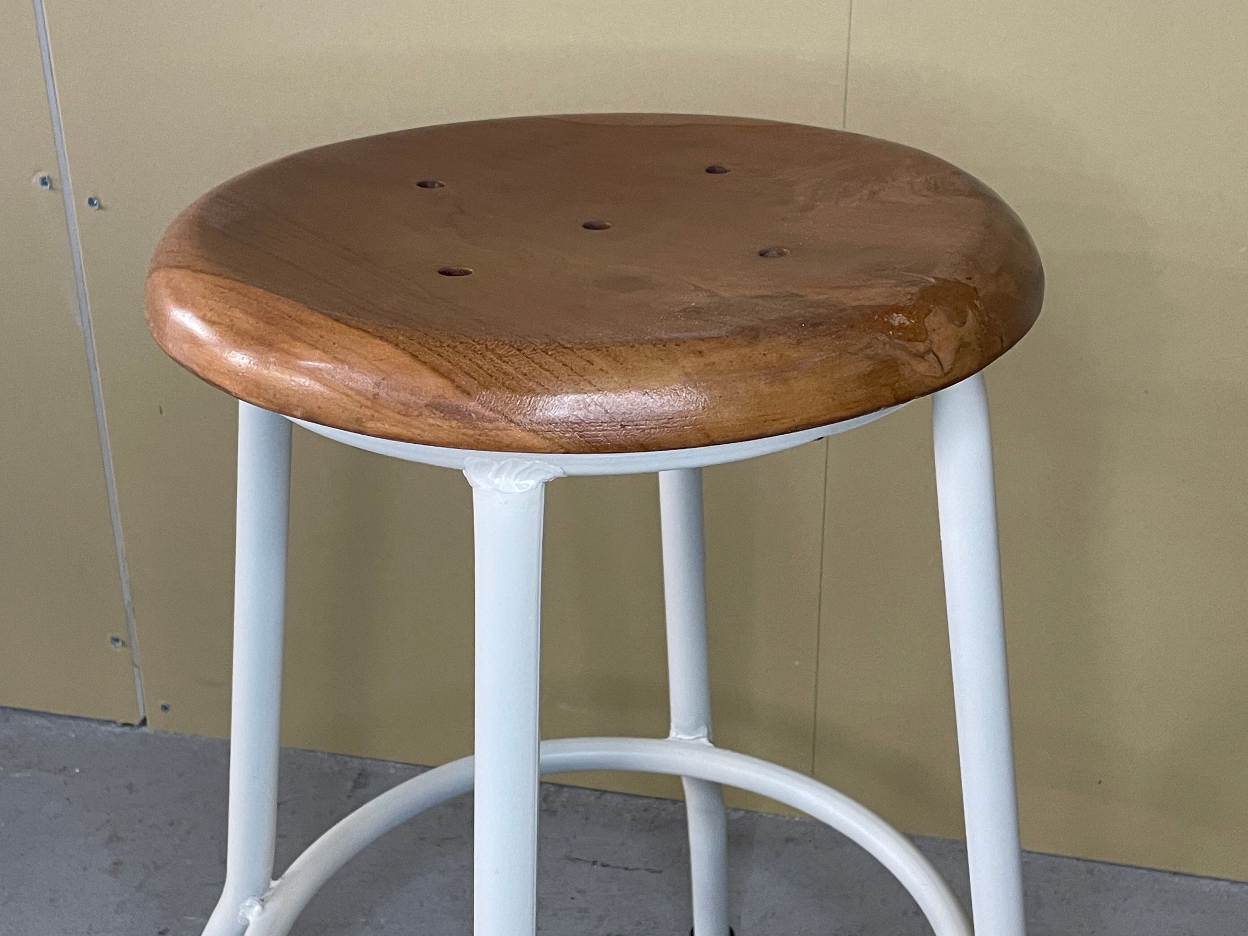鉄脚スツール チーク無垢材 ホワイト cha018S