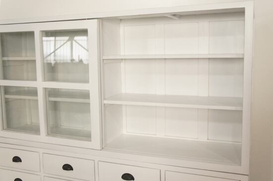 この食器棚は、一枚一枚が丁寧に作られており、その製作工程には時間と手間がかけられています。贅沢な空間を演出するアンティーク調のキャビネットは、お部屋に特別感を与えること間違いなしです。
